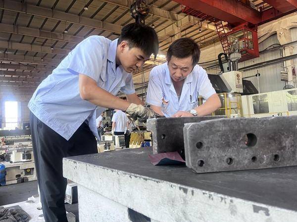 为追赶进度,他主动加码训练:夏天的车间犹如“蒸笼”,高强度训练下,他的衣衫反复被汗水浸透,干后结出层层盐花。他每天从清晨6点训练到晚上9点,午间匆匆吃口饭便立刻返回实训场;深夜,他仍手捧理论书籍逐字钻研,直到双眼难睁才休息。在图纸绘制上,别人画一遍的图纸,他至少画3遍。“先凭记忆临摹,再照着实物校准,用尺子反复丈量线条误差,必须通过多次练习,形成精准记忆。”党金鑫说。